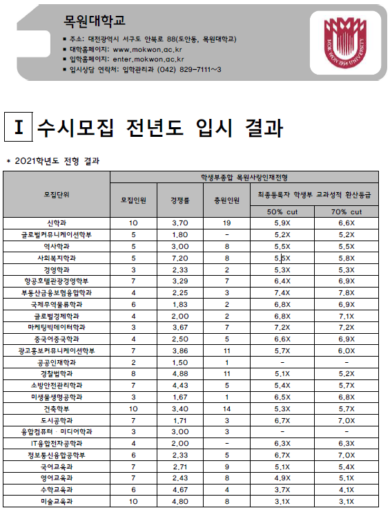 | 목포대학교 2021학년도 입시결과-수시등급. 정시 커트라인 (0) | 2021.08.03 |