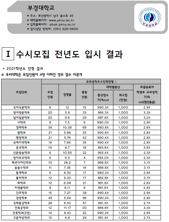 | 부산대학교 2021학년도 입시결과-수시등급. 정시 커트라인 (0) | 2021.08.05 |