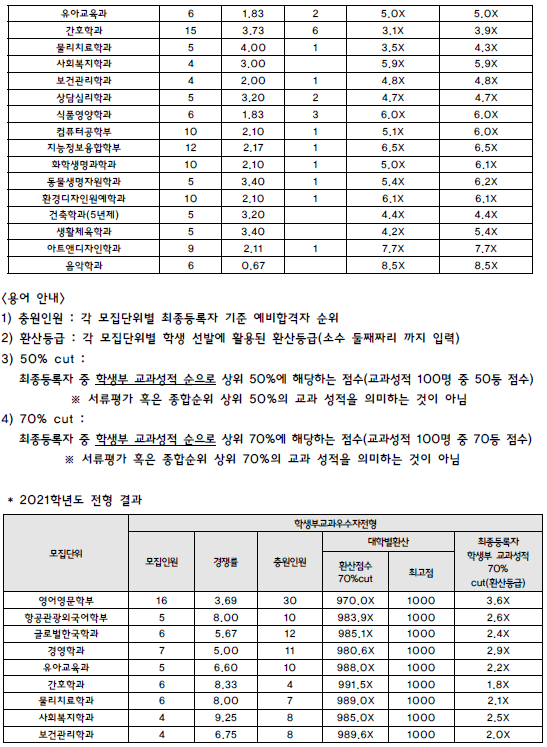 | 부산교육대학교(부산교대) 2021학년도 입시결과-수시등급. 정시 커트라인 (0) | 2021.08.05 |
