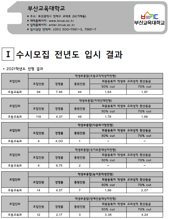 | 부산대학교 2021학년도 입시결과-수시등급. 정시 커트라인 (0) | 2021.08.05 |
