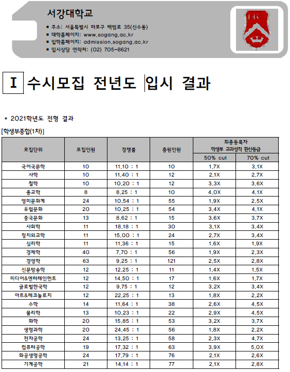 | 서경대학교 2021학년도 입시결과-수시등급. 정시 커트라인 (0) | 2021.08.05 |