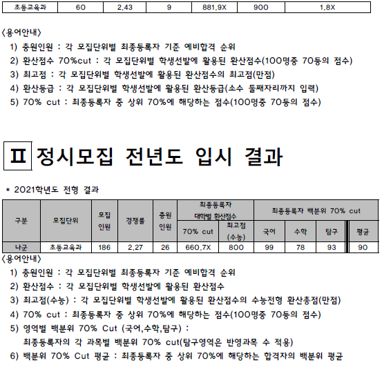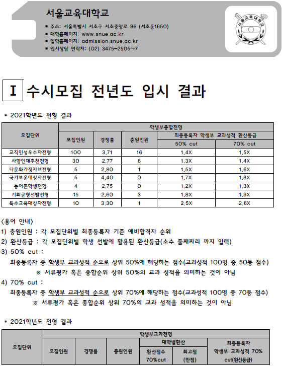 | 서울대학교 2021학년도 입시결과-수시등급. 정시 커트라인 (0) | 2021.08.05 |