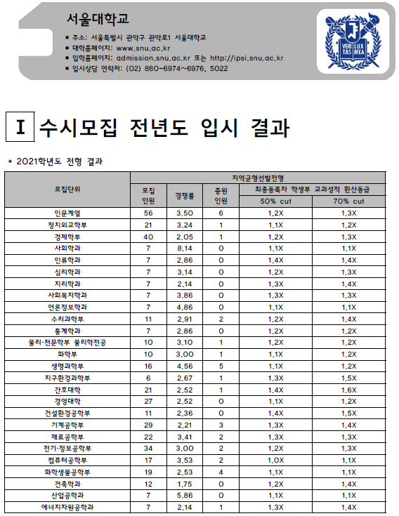 | 서울시립대학교 2021학년도 입시결과-수시등급. 정시 커트라인 (0) | 2021.08.05 |