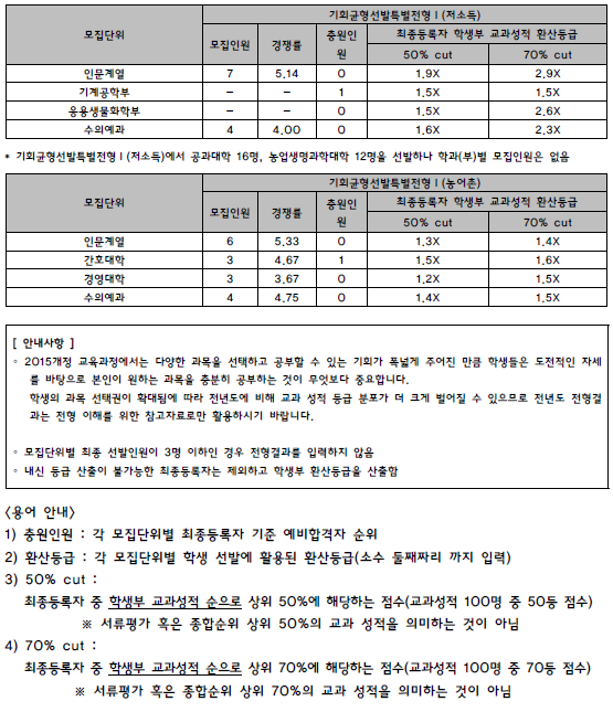 | 서울과학기술대학교 2021학년도 입시결과-수시등급. 정시 커트라인 (0) | 2021.08.05 |