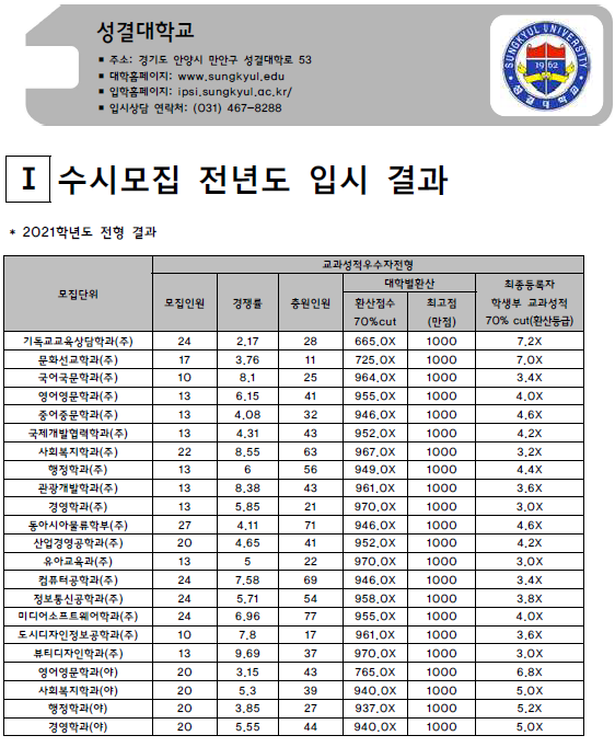 | 성균관대학교 2021학년도 입시결과-수시등급. 정시 커트라인 (0) | 2021.08.05 |