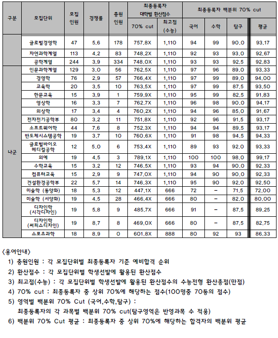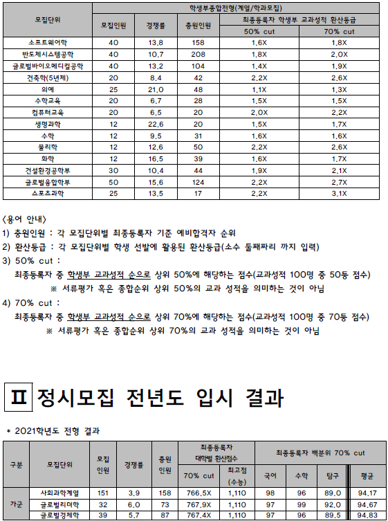 | 서울시립대학교 2021학년도 입시결과-수시등급. 정시 커트라인 (0) | 2021.08.05 |
