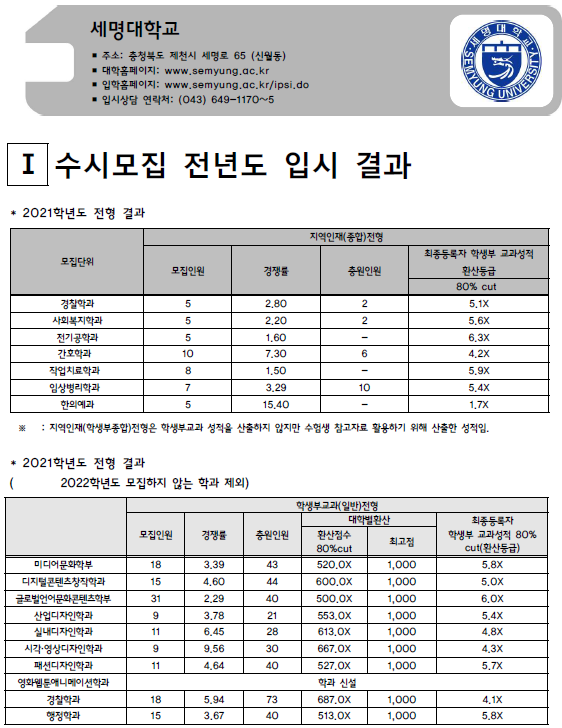 | 세종대학교 2021학년도 입시결과-수시등급. 정시 커트라인 (0) | 2021.08.05 |