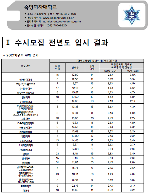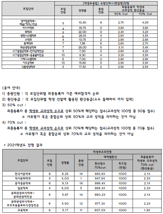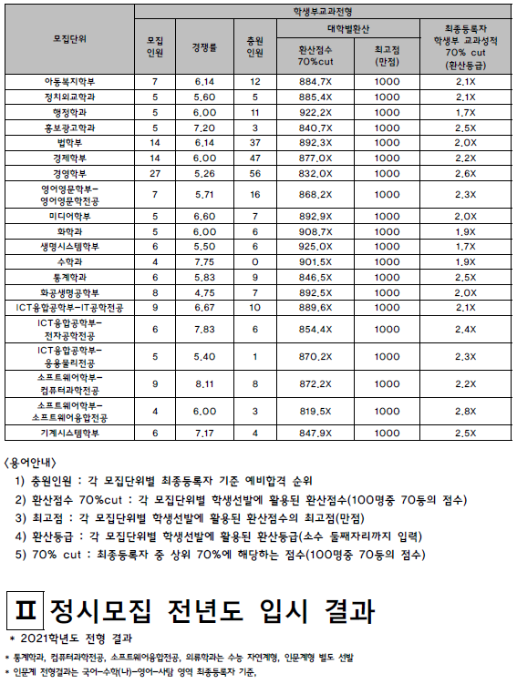 | 세종대학교 2021학년도 입시결과-수시등급. 정시 커트라인 (0) | 2021.08.05 |