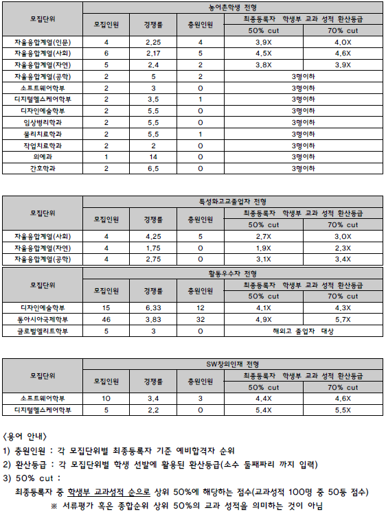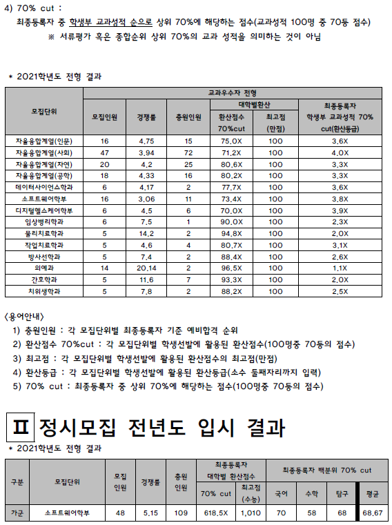 | 용인대학교 2021학년도 입시결과-수시등급. 정시 커트라인 (0) | 2021.08.05 |