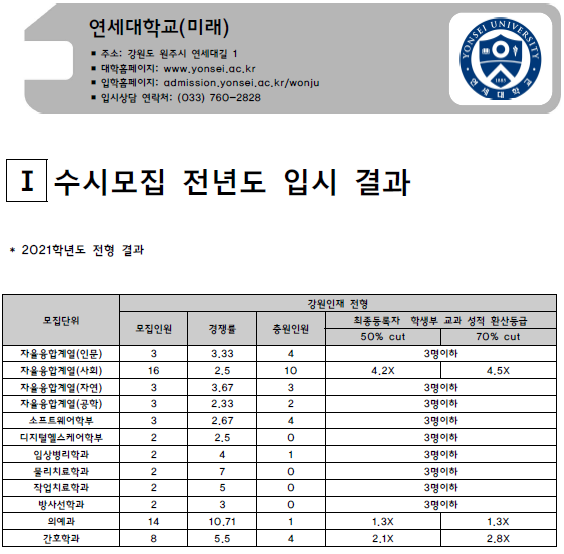 | 연세대학교 2021학년도 입시결과-수시등급. 정시 커트라인 (0) | 2021.08.05 |
