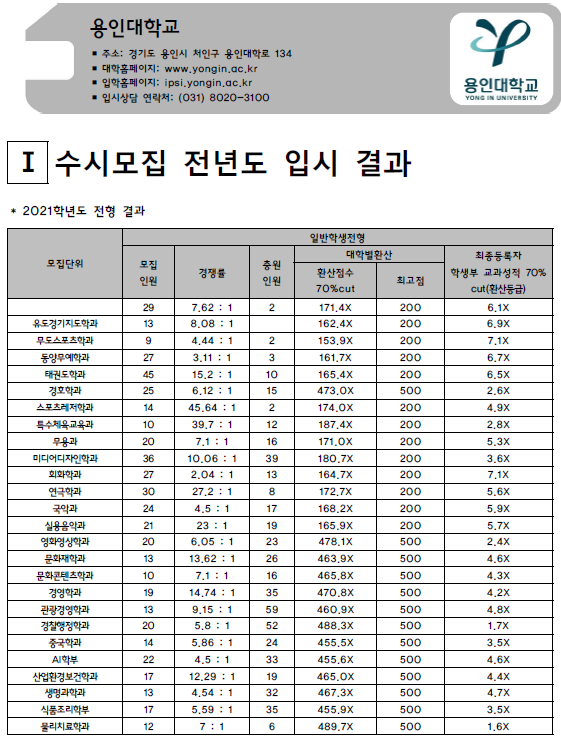 | 영남대학교 2021학년도 입시결과-수시등급. 정시 커트라인 (0) | 2021.08.05 |