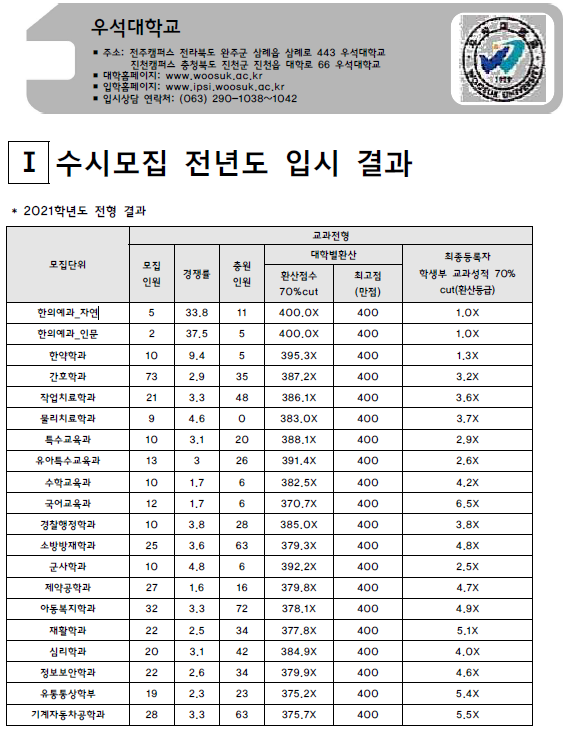 | 우송대학교 2021학년도 입시결과-수시등급. 정시 커트라인 (2) | 2021.08.05 |