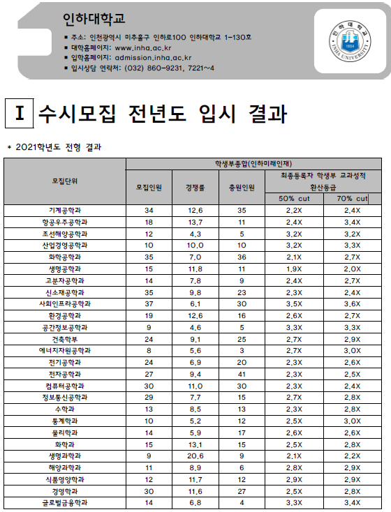 | 인천대학교 2021학년도 입시결과-수시등급. 정시 커트라인 (0) | 2021.08.05 |