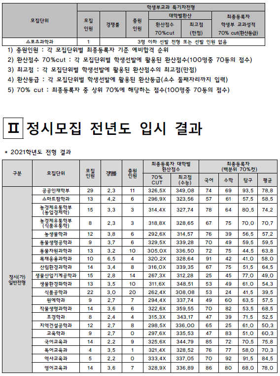 | 전남대학교 2021학년도 입시결과-수시등급. 정시 커트라인 (0) | 2021.08.06 |