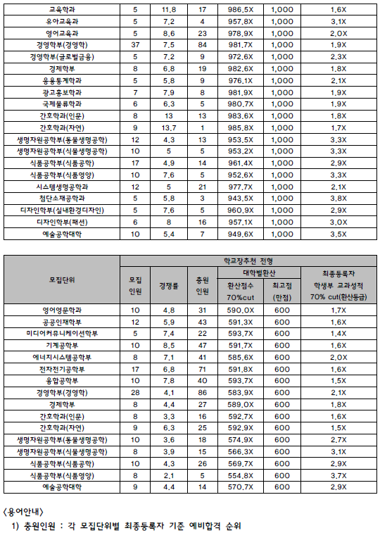 | 진주교육대학교(진주교대) 2021학년도 입시결과-수시등급. 정시 커트라인 (0) | 2021.08.06 |