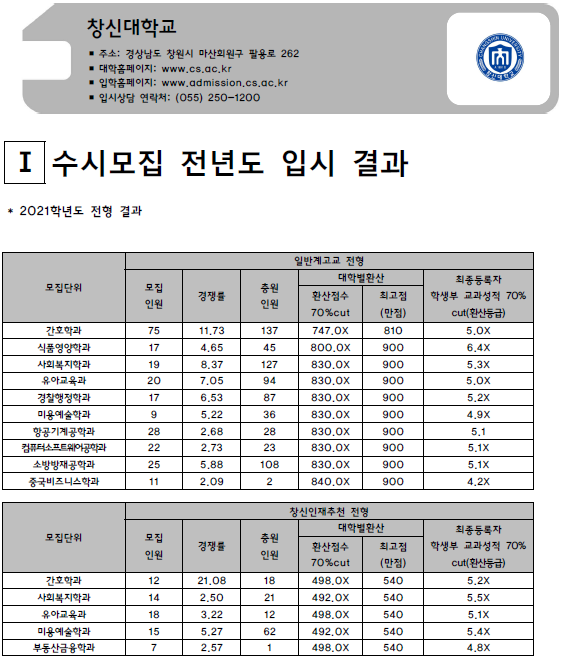 | 창원대학교 2021학년도 입시결과-수시등급. 정시 커트라인 (0) | 2021.08.06 |