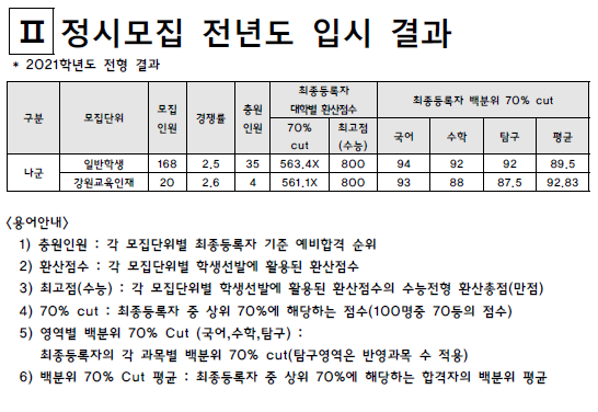 | 충남대학교 2021학년도 입시결과-수시등급. 정시 커트라인 (0) | 2021.08.06 |