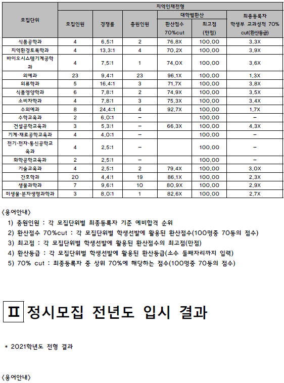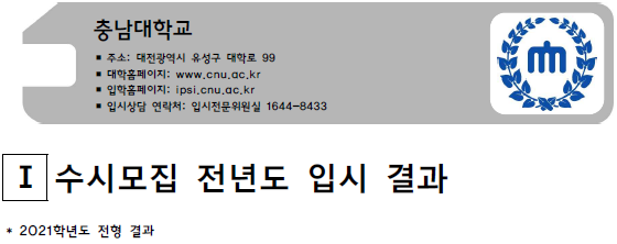 | 충북대학교 2021학년도 입시결과-수시등급. 정시 커트라인 (0) | 2021.08.06 |