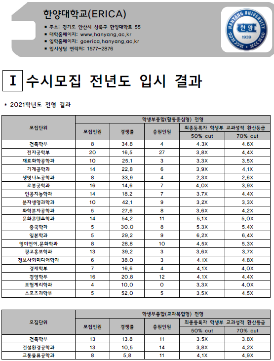 | 한양대학교 2021학년도 입시결과-수시등급. 정시 커트라인 (0) | 2021.08.06 |