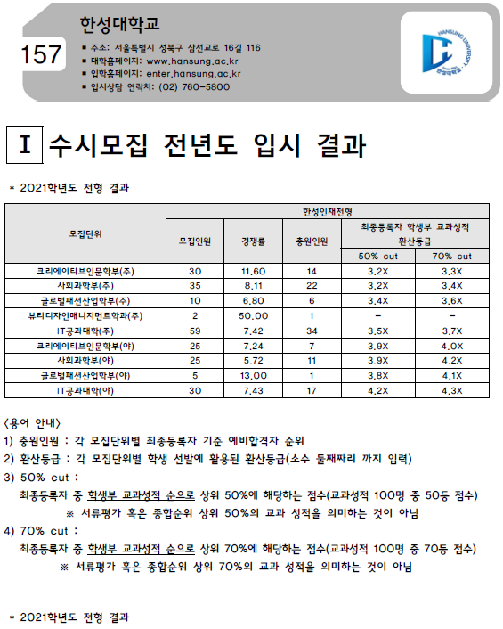 | 한신대학교 2021학년도 입시결과-수시등급. 정시 커트라인 (0) | 2021.08.09 |