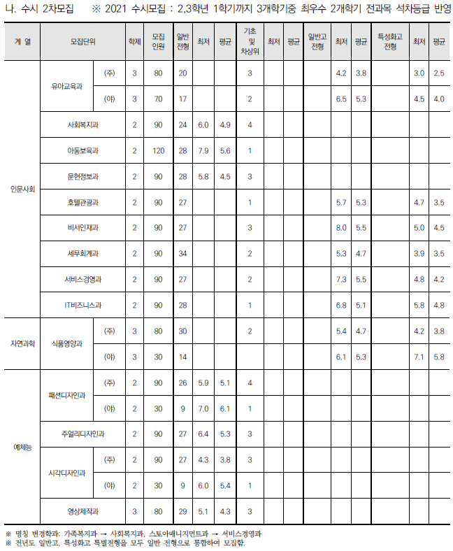 | 서일대학교 2022 수시전형 모집요강 및 전년도 수시 입시결과(수시등급) (0) | 2021.08.09 |