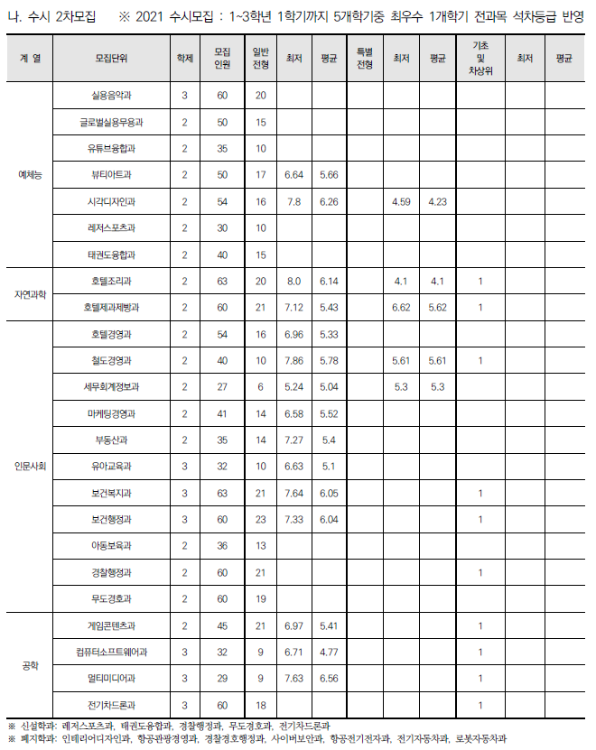 | 계원예술대학교 2022 수시전형 모집요강 및 전년도 수시 입시결과(수시등급) (0) | 2021.08.09 |