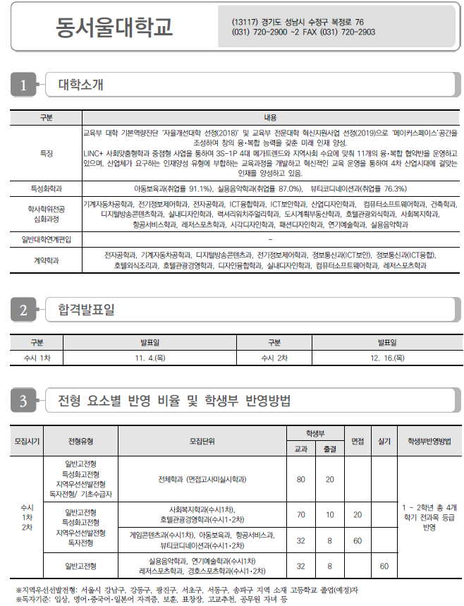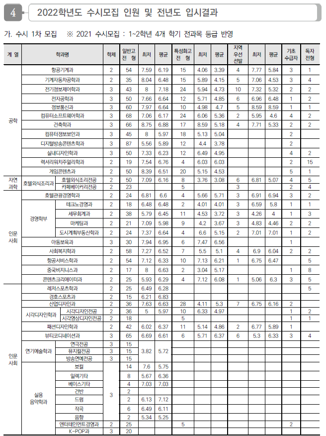 | 동아방송예술대학교 2022 수시전형 모집요강 및 전년도 수시 입시결과(수시등급) (0) | 2021.08.09 |