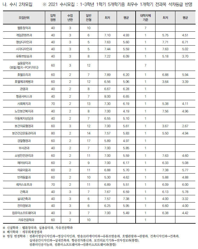 | 부천대학교 2022 수시전형 모집요강 및 전년도 수시 입시결과(수시등급) (0) | 2021.08.09 |