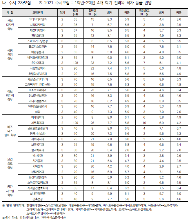 | 안산대학교 2022 수시전형 모집요강 및 전년도 수시 입시결과(수시등급) (0) | 2021.08.10 |