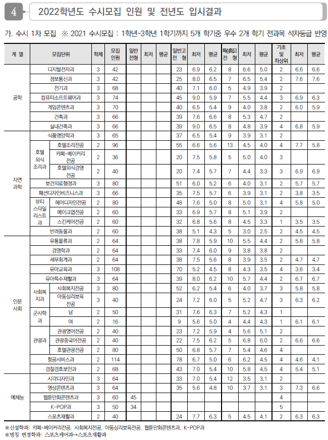 | 용인예술과학대학교 2022 수시전형 모집요강 및 전년도 수시 입시결과(수시등급) (0) | 2021.08.10 |