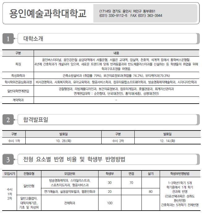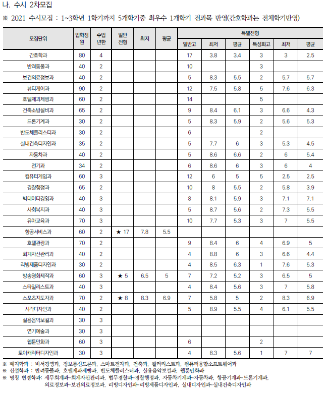 | 연성대학교 2022 수시전형 모집요강 및 전년도 수시 입시결과(수시등급) (0) | 2021.08.10 |