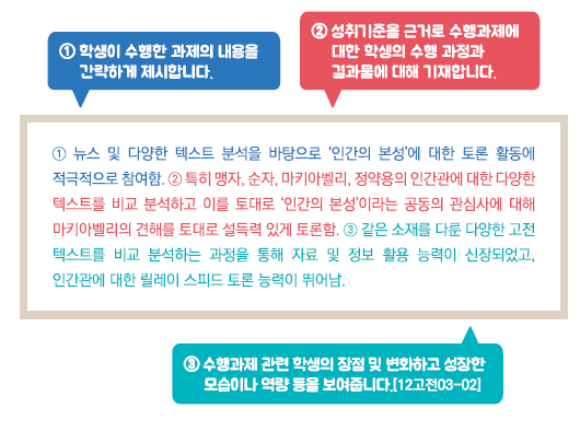 - 학생의 수행평가 결과물 및 과정에 대한 관찰기록을 활용