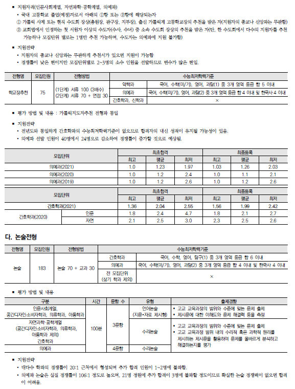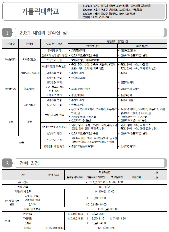 | 가톨릭관동대학교 2022학년도 수시전형 방법, 모집요강 및 전년도 수시 입시결과(수시등급) (0) | 2021.08.10 |