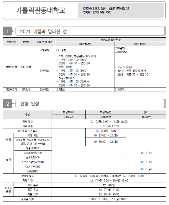 | 가톨릭대학교 2022학년도 수시전형 방법, 모집요강 및 전년도 수시 입시결과(수시등급) (0) | 2021.08.10 |