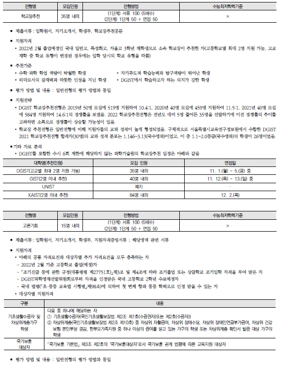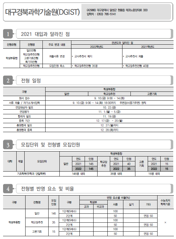 | 광주과학기술원(지스트. GIST) 2022학년도 수시전형 방법, 모집요강 및 전년도 수시 입시결과(수시등급) (0) | 2021.08.10 |