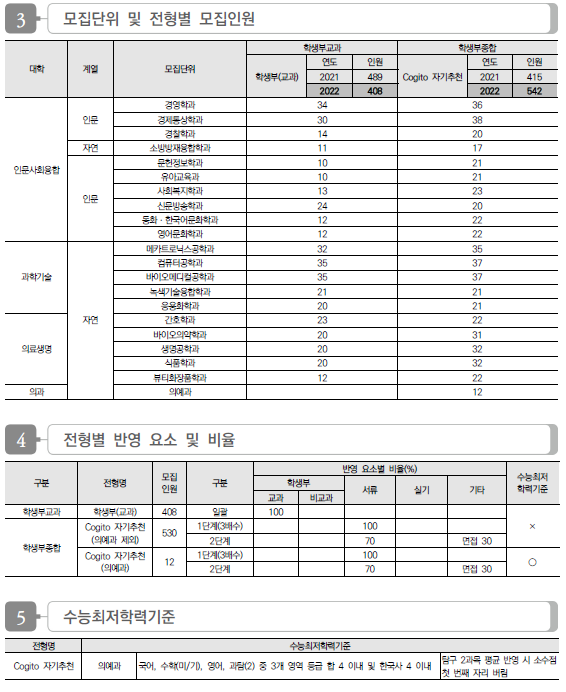 | 경기대학교 2022학년도 수시전형 방법, 모집요강 및 전년도 수시 입시결과(수시등급) (0) | 2021.08.10 |
