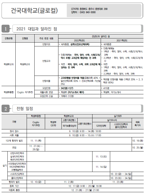 | 건국대학교 2022학년도 수시전형 방법, 모집요강 및 전년도 수시 입시결과(수시등급) (0) | 2021.08.10 |