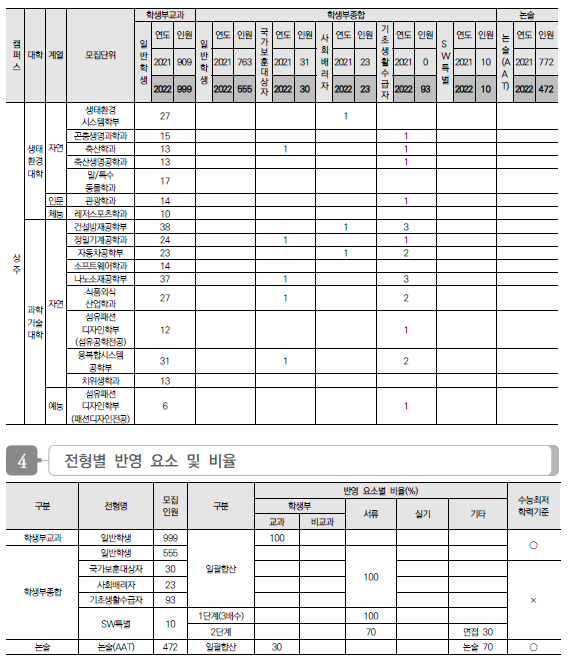 | 경기대학교 2022학년도 수시전형 방법, 모집요강 및 전년도 수시 입시결과(수시등급) (0) | 2021.08.10 |