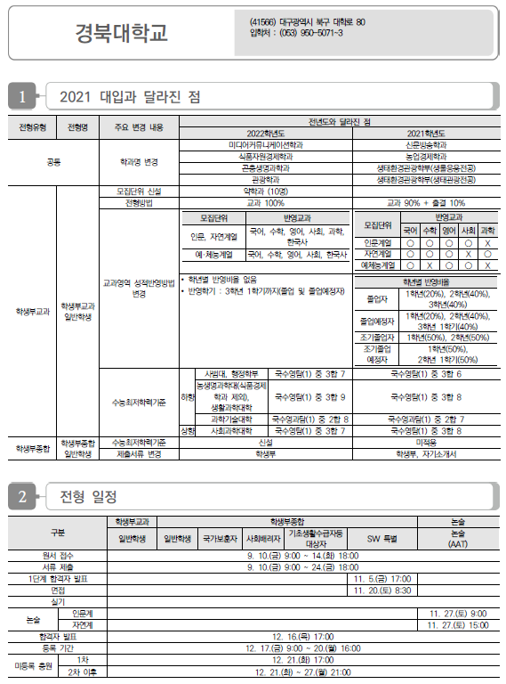 | 경동대학교 2022학년도 수시전형 방법, 모집요강 및 전년도 수시 입시결과(수시등급) (0) | 2021.08.10 |