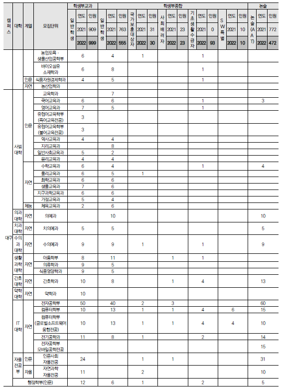| 경인교육대학교(경인교대) 2022학년도 수시전형 방법, 모집요강 및 전년도 수시 입시결과(수시등급) (0) | 2021.08.10 |