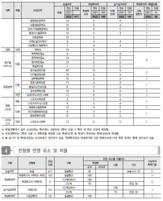 | 경북대학교 2022학년도 수시전형 방법, 모집요강 및 전년도 수시 입시결과(수시등급) (0) | 2021.08.10 |