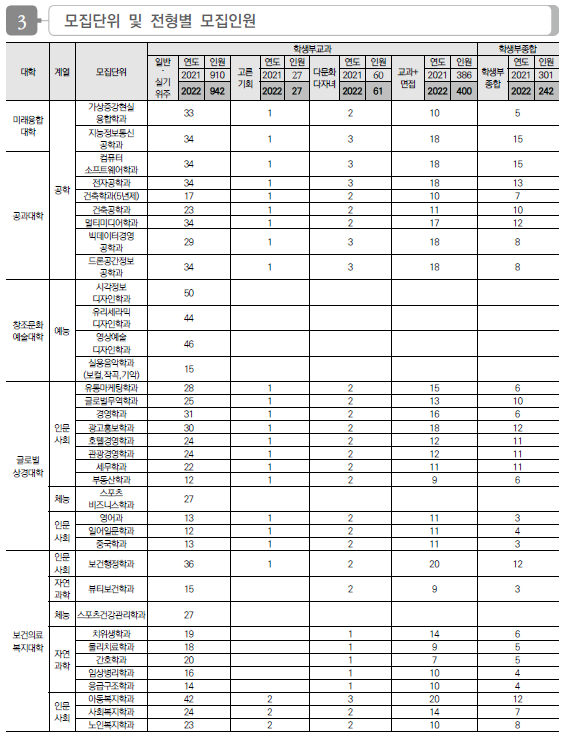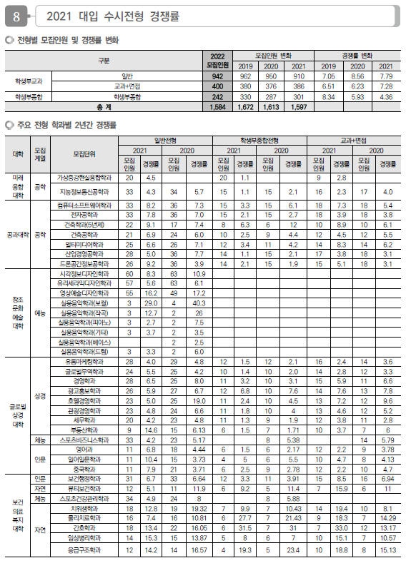 | 광운대학교 2022학년도 수시전형 방법, 모집요강 및 전년도 수시 입시결과(수시등급) (0) | 2021.08.12 |