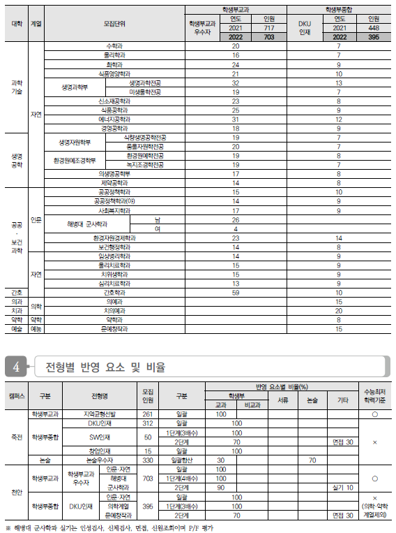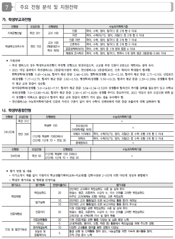 | 남서울대학교 2022학년도 수시전형 방법, 모집요강 및 전년도 수시 입시결과(수시등급) (0) | 2021.08.12 |