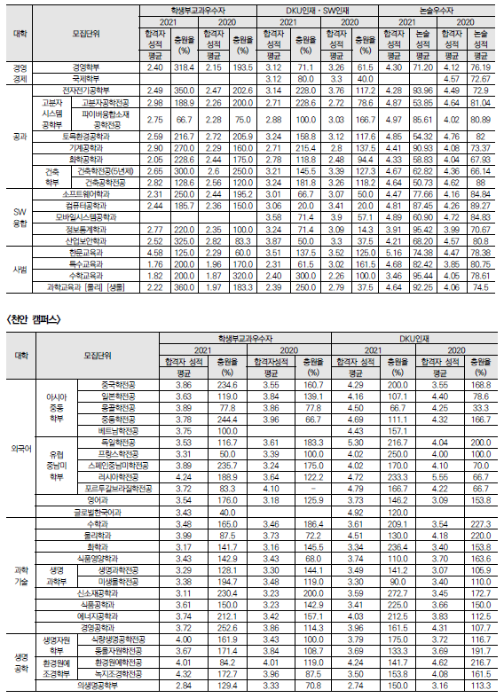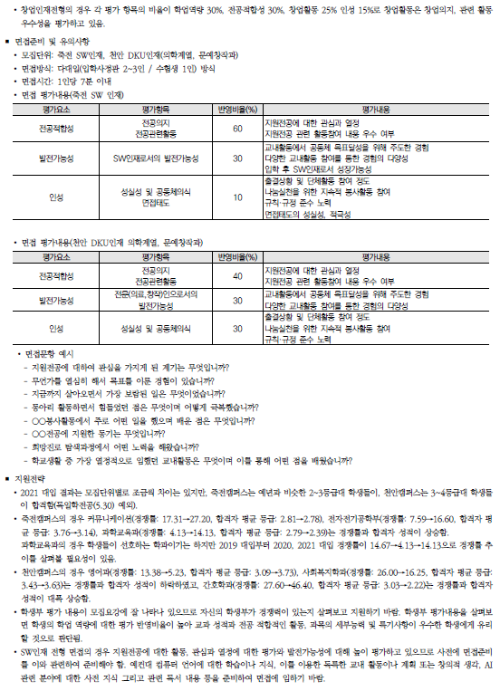 | 덕성여자대학교 2022학년도 수시전형 방법, 모집요강 및 전년도 수시 입시결과(수시등급) (0) | 2021.08.12 |