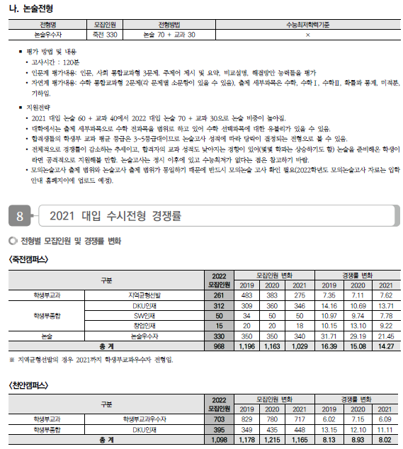 | 국민대학교 2022학년도 수시전형 방법, 모집요강 및 전년도 수시 입시결과(수시등급) (0) | 2021.08.12 |