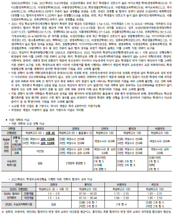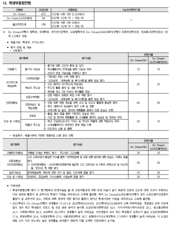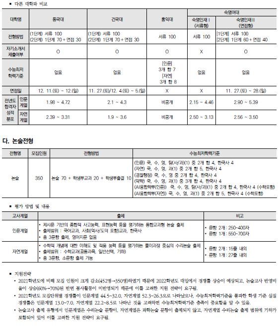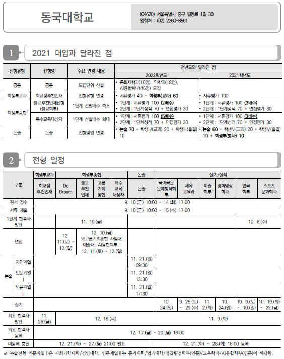 | 동덕여자대학교 2022학년도 수시전형 방법, 모집요강 및 전년도 수시 입시결과(수시등급) (0) | 2021.08.12 |