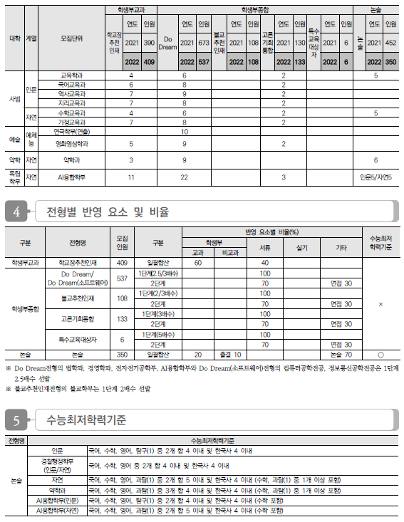 | 대전대학교 2022학년도 수시전형 방법, 모집요강 및 전년도 수시 입시결과(수시등급) (0) | 2021.08.12 |