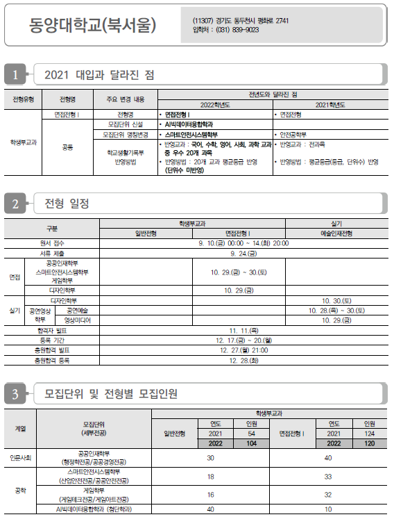 | 동덕여자대학교 2022학년도 수시전형 방법, 모집요강 및 전년도 수시 입시결과(수시등급) (0) | 2021.08.12 |