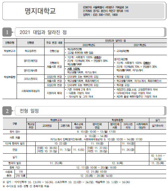 | 목원대학교 2022학년도 수시전형 방법, 모집요강 및 전년도 수시 입시결과(수시등급) (0) | 2021.08.12 |