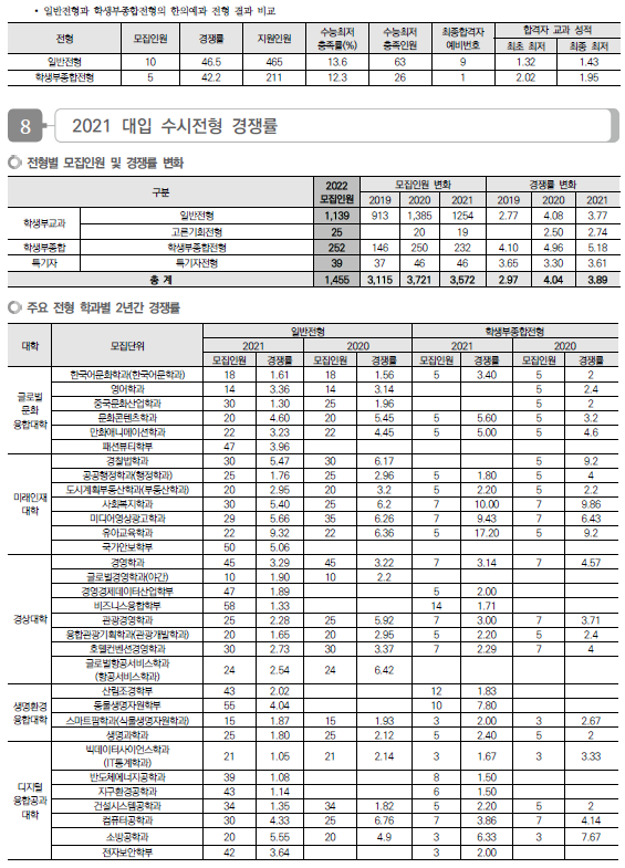 | 부산대학교 2022학년도 수시전형 방법, 모집요강 및 전년도 수시 입시결과(수시등급) (0) | 2021.08.12 |